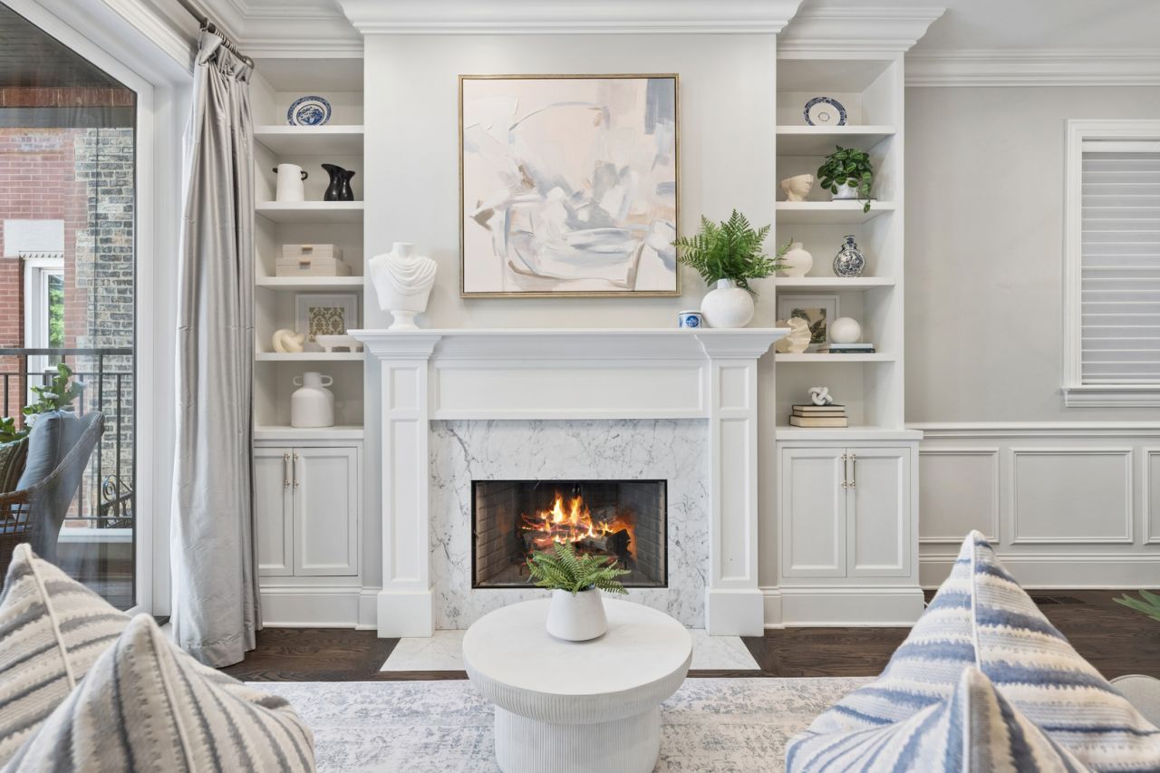 Exceptional 4-bedroom, 2.1-bath duplex down offering approximately 2,500 square feet of thoughtfully designed living space in an intimate, full masonry building on a premier Lincoln Park block. With all four bedrooms situated on the lower level, the home offers a highly desirable layout that creates a natural separation between refined entertaining spaces and private living quarters. A gracious entry introduces a beautifully appointed main level, where a front living room anchored by a marble fireplace is framed by custom built-in bookcases and tailored millwork. The space flows effortlessly into a dedicated dining area, enhanced by a custom built-in buffet featuring a beverage refrigerator and glass-front cabinetry. Just beyond, an oversized covered terrace extends the living space outdoors, offering a serene setting overlooking tree-lined Seminary. The kitchen is designed with ceiling-height white cabinetry, quartz countertops, and a substantial island with a mitered edge. A suite of professional-grade appliances by Wolf, Bosch, and Sub-Zero is complemented by a custom built-in desk and a generous pantry. The kitchen opens seamlessly to an expansive family room, which leads to a secondary deck ideal for grilling and an impressive garage roof deck complete with a pergola. The lower level is entirely dedicated to private living quarters and is enhanced by radiant heated porcelain tile floors and plush carpet. The primary suite offers a true retreat, featuring dual walk-in closets and a spa-caliber bath appointed with marble finishes, a double vanity, soaking tub, and steam shower. Three additional well-proportioned bedrooms, an elegantly finished full bath, and a side-by-side laundry room complete this level. All bathrooms are finished in timeless marble. Throughout the residence, you will find an exceptional millwork package, including wainscoting and crown molding, soaring 10-foot ceilings, 8-foot doors, and custom designer drapery, Hunter Douglas shades and professionally organized storage. One garage parking space with easy in and out included. Perfectly positioned on a quiet, tree-lined street, the home offers immediate access to Jonquil Park and with a short walk to the Diversey brown line, the Fresh Market and Trader Joes. A collection of beloved neighborhood destinations-including Pat's Pizza, Batter & Berries, Panes Bread Cafe, Juno Sushi.